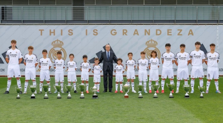 在這一歷史性的賽季中,皇馬13支梯隊(duì)贏得了各自級(jí)別的聯(lián)賽冠軍:包括從青年隊(duì)到幼年隊(duì)的男女梯隊(duì),分別是:Juvenil A, Juvenil B, Juvenil C, Cadete A, Cadete B, Infantil A, Infantil B, Alevín B, Alevín C, Benjamín A, Benjamín B, Prebenjamín A y Prebenjamín B。這些隊(duì)伍的隊(duì)長們也與主席合影留念。