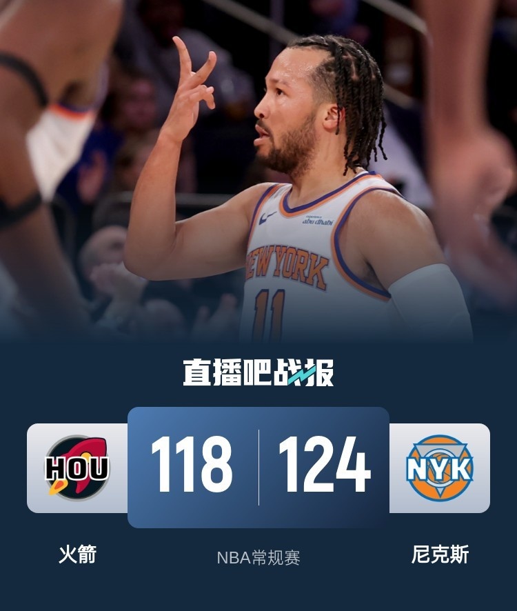 首節(jié)之爭(zhēng)火箭雖然缺少兩位核心但場(chǎng)面不落下風(fēng),節(jié)中一波8-0幫助他們?cè)诶彂?zhàn)中取得領(lǐng)先;次節(jié)火箭上來(lái)就是一波9-0的攻勢(shì)拉開(kāi)兩位數(shù)領(lǐng)先;不過(guò)尼克斯隨后迅速找回狀態(tài)和火箭展開(kāi)拉鋸,以布里奇斯為首的尼克斯在最后時(shí)刻連續(xù)拿分追至5分進(jìn)入下半場(chǎng)。休息歸來(lái)尼克斯搶開(kāi)局回敬14-2的攻勢(shì)一度實(shí)現(xiàn)反超,但是火箭末段進(jìn)入輪換反而占據(jù)上風(fēng),阿門(mén)最后晃到對(duì)手踉蹌的情況下完成隔扣2+1,火箭送出20-6的攻勢(shì)重建兩位數(shù)領(lǐng)先;不過(guò)末節(jié)尼克斯又一次頑強(qiáng)追上比分并依靠唐斯的2+1實(shí)現(xiàn)反超,決勝時(shí)刻雙方都阻止不了對(duì)手交替反超,不過(guò)布倫森站出來(lái)連拿7分,包括最后制勝三分奠定勝局,阿門(mén)最后制造布倫森失誤但回頭自己也出現(xiàn)失誤。最終,尼克斯力克火箭并送后者3連敗。