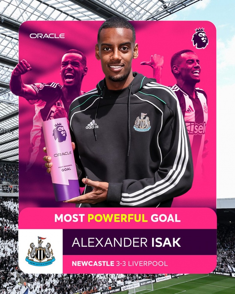 5月31日訊 英超官方宣布,伊薩克在紐卡3-3利物浦比賽中打進(jìn)的遠(yuǎn)射,當(dāng)選本賽季最具力量感進(jìn)球獎(jiǎng)。