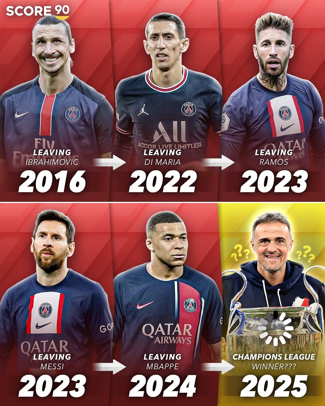 巴黎上一次進(jìn)入歐冠決賽是在2020年,最終他們不敵拜仁屈居亞軍。在之后的5年里,巴黎在轉(zhuǎn)會(huì)市場(chǎng)上凈投入超過(guò)5.76億歐,也伴隨著迪馬利亞、拉莫斯、梅西、內(nèi)馬爾、姆巴佩這些超巨的離開。