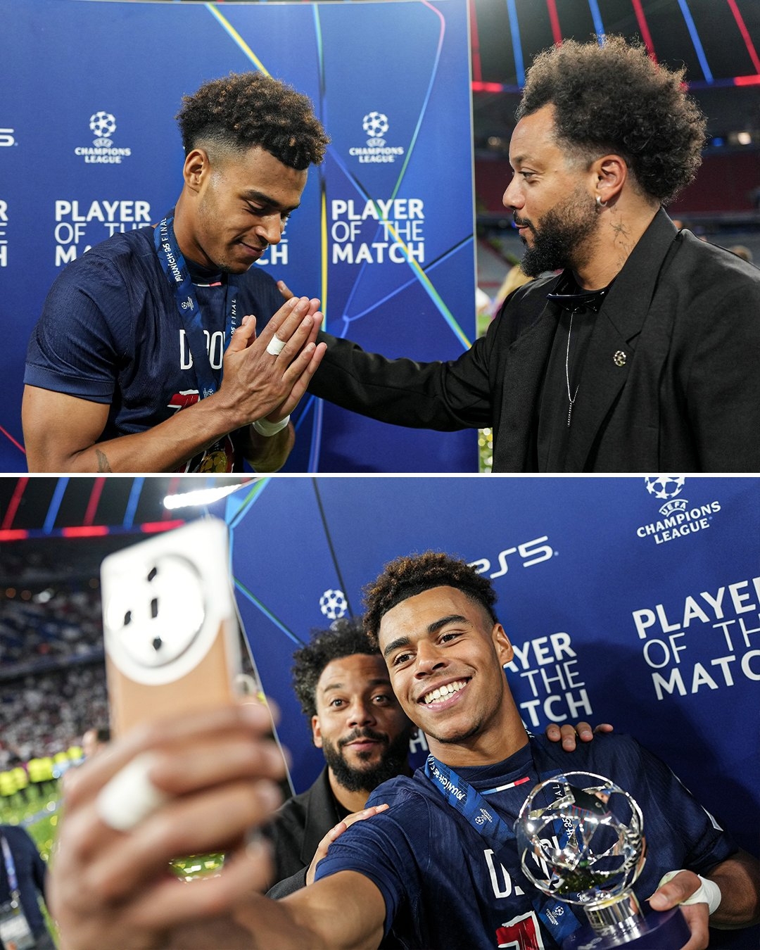 皇馬名宿馬塞洛為這位小將頒獎(jiǎng),杜埃雙手合十,彎腰向前輩致意,盡顯謙遜。