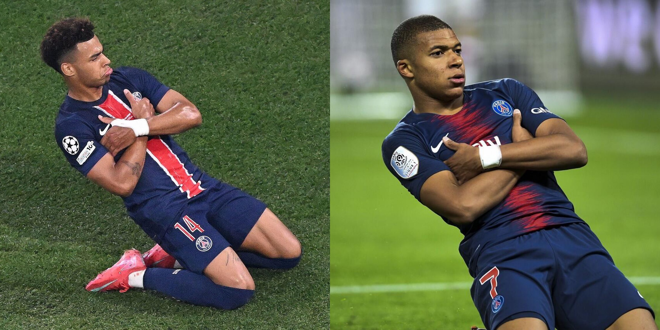 杜埃開(kāi)場(chǎng)20分鐘便完成傳射,他在進(jìn)球后模仿姆巴佩抱胸滑跪慶祝。