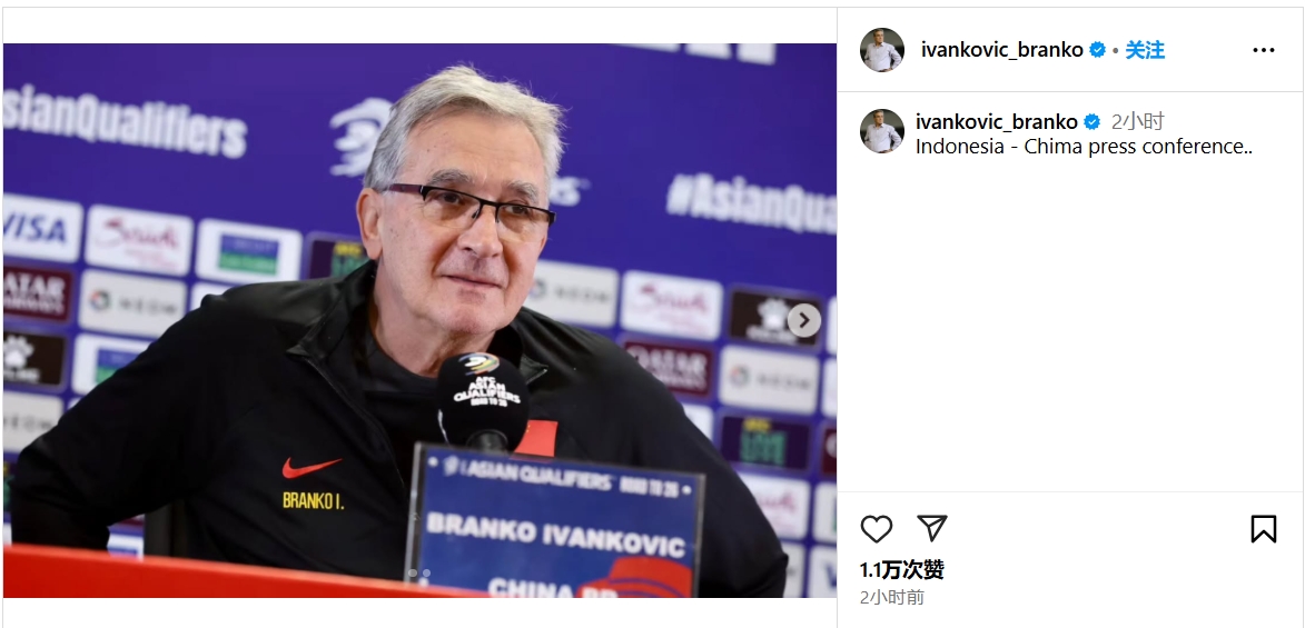 賽前,70歲的國足主帥伊萬更新社媒,發(fā)布了和張玉寧參加賽前發(fā)布會的照片,并配文:印尼-中國賽前發(fā)布會。