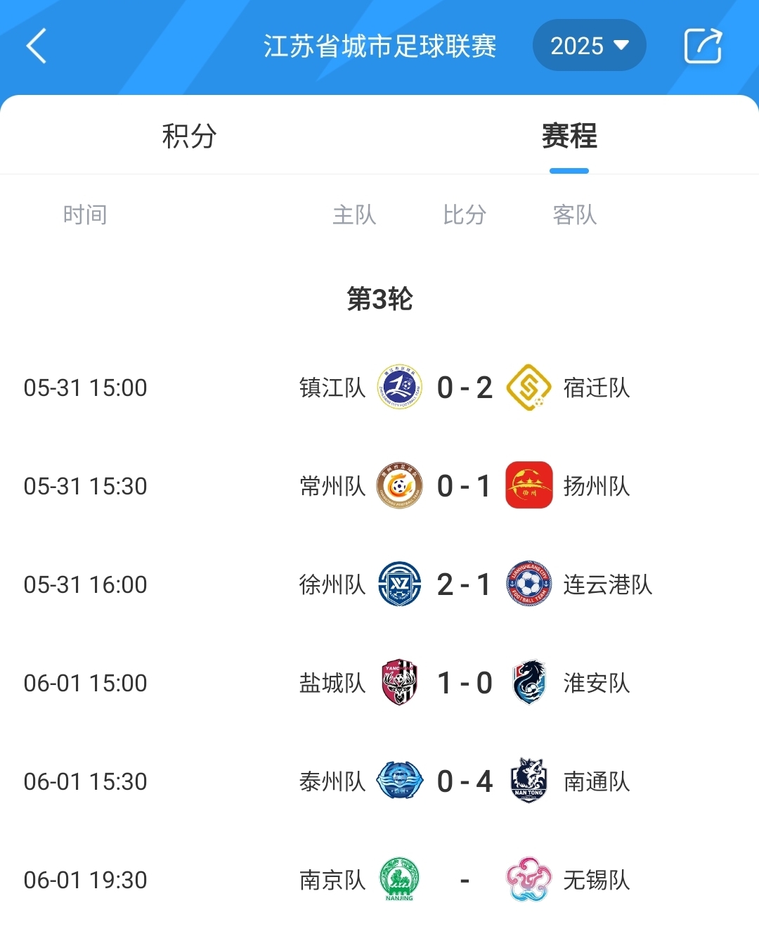 各位江蘇十三太保的球迷可以去足球→全民賽事頻道,查看對應(yīng)的積分榜!