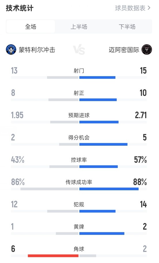 7月6日訊 美職聯(lián)常規(guī)賽,蒙特利爾沖擊1-4邁阿密國(guó)際。