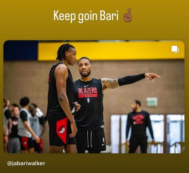 利拉德曬出了兩人在開拓者訓練時自己指導沃克的照片,并寫到:“繼續(xù)加油,Bari?!边€附上了一個“cross your fingers”的表情,意為祝你好運。