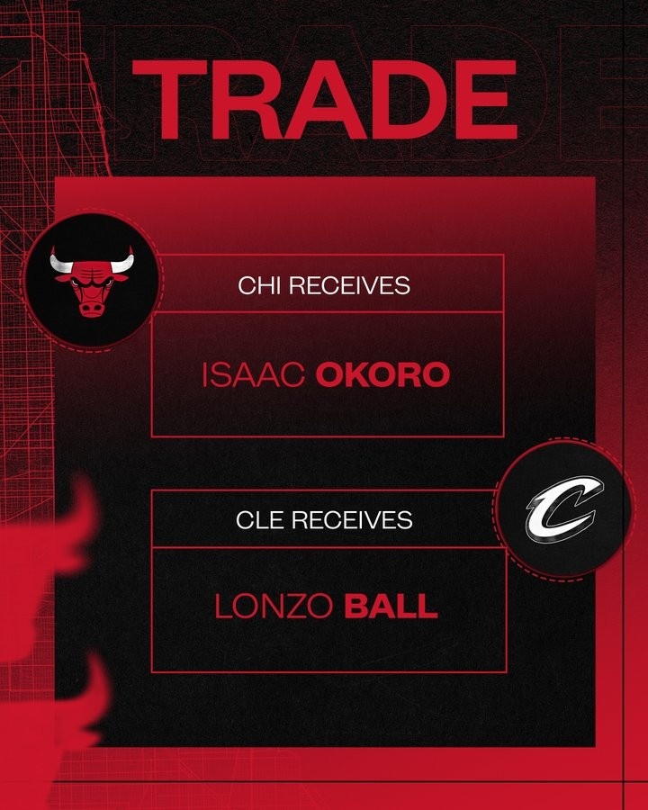 7月7日訊 公牛官方宣布,球隊(duì)和騎士的交易正式達(dá)成,這比交易中,公牛送出后衛(wèi)朗佐-鮑爾,換回后衛(wèi)/前鋒艾薩克-奧科羅。