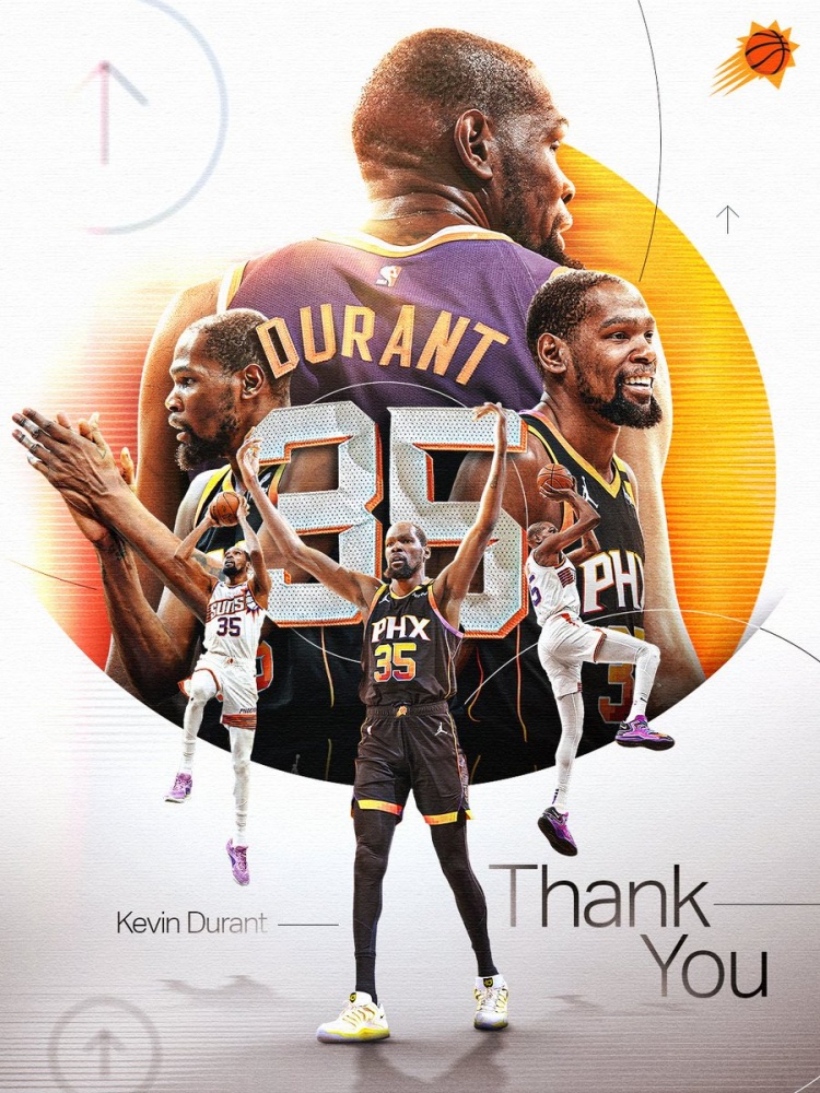 太陽官方曬圖致謝杜蘭特寫道:“謝謝你,KD。”