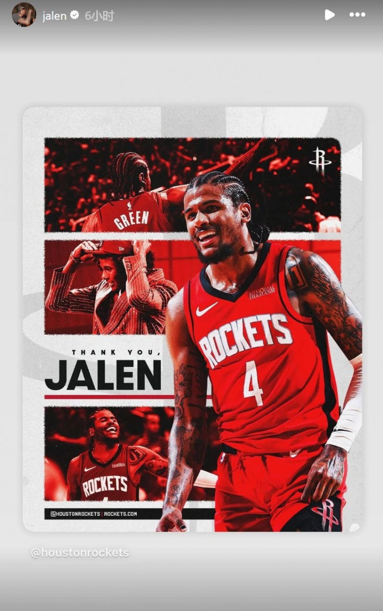 杰倫-格林在INS發(fā)圖告別火箭,他寫道:“休斯敦?。?!感謝你們的一切??,你們從第一天起就給予我的支持和愛,我永遠不會忘記????這份情誼將永存?????!?/p>