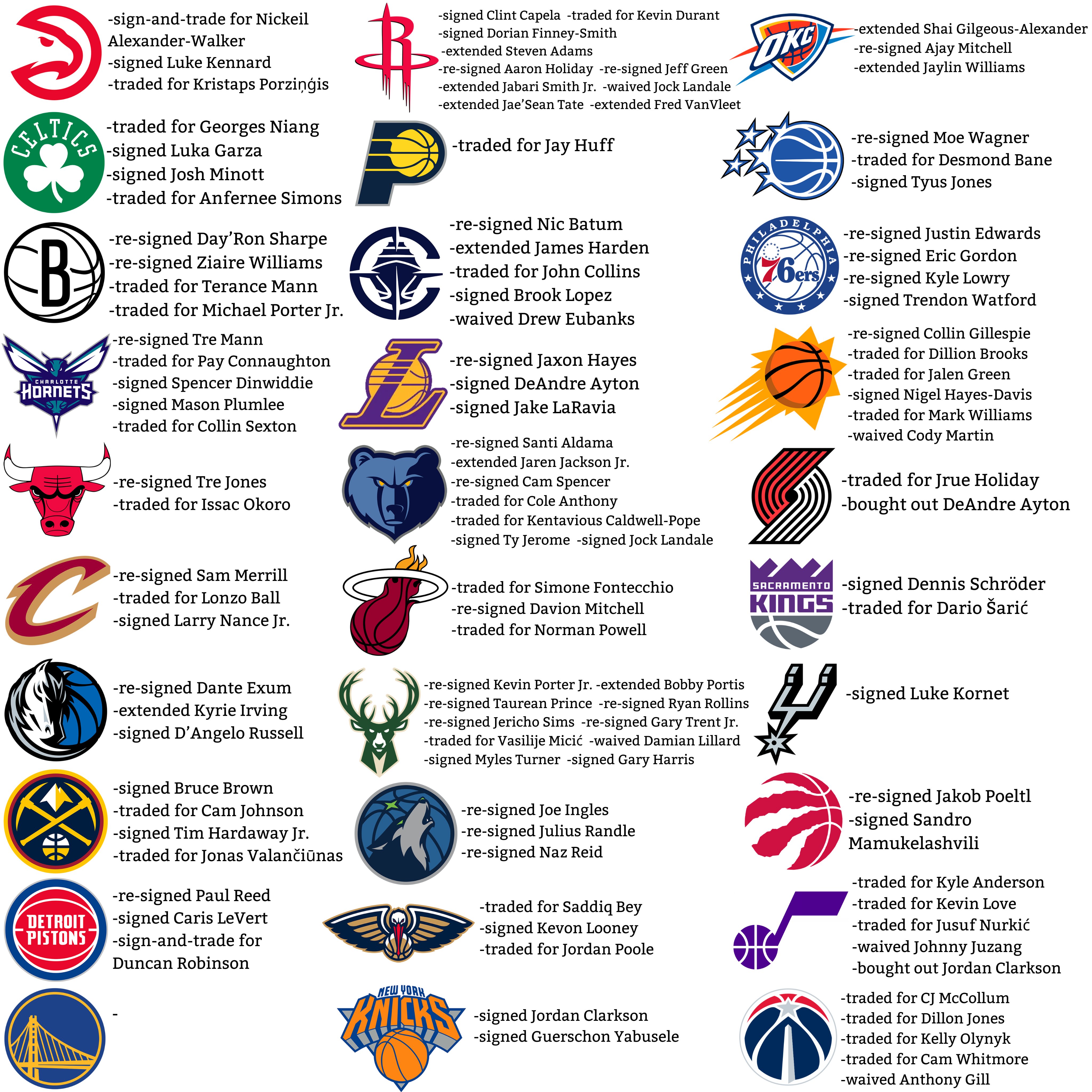 ??只有勇士還在睡覺!休賽期至今 其余29隊(duì)均已有操作!