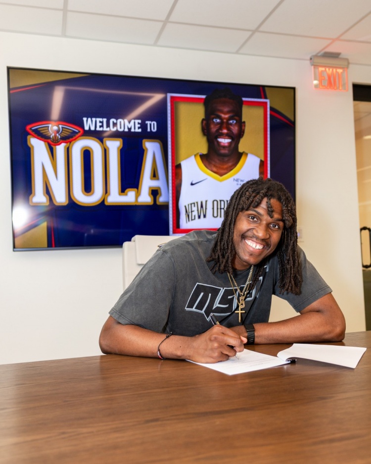 7月8日訊 鵜鶘官方宣布正式和凱文-盧尼簽約,曬出簽約瞬間的照片并配文:“大個子正式簽字了?!?/p>