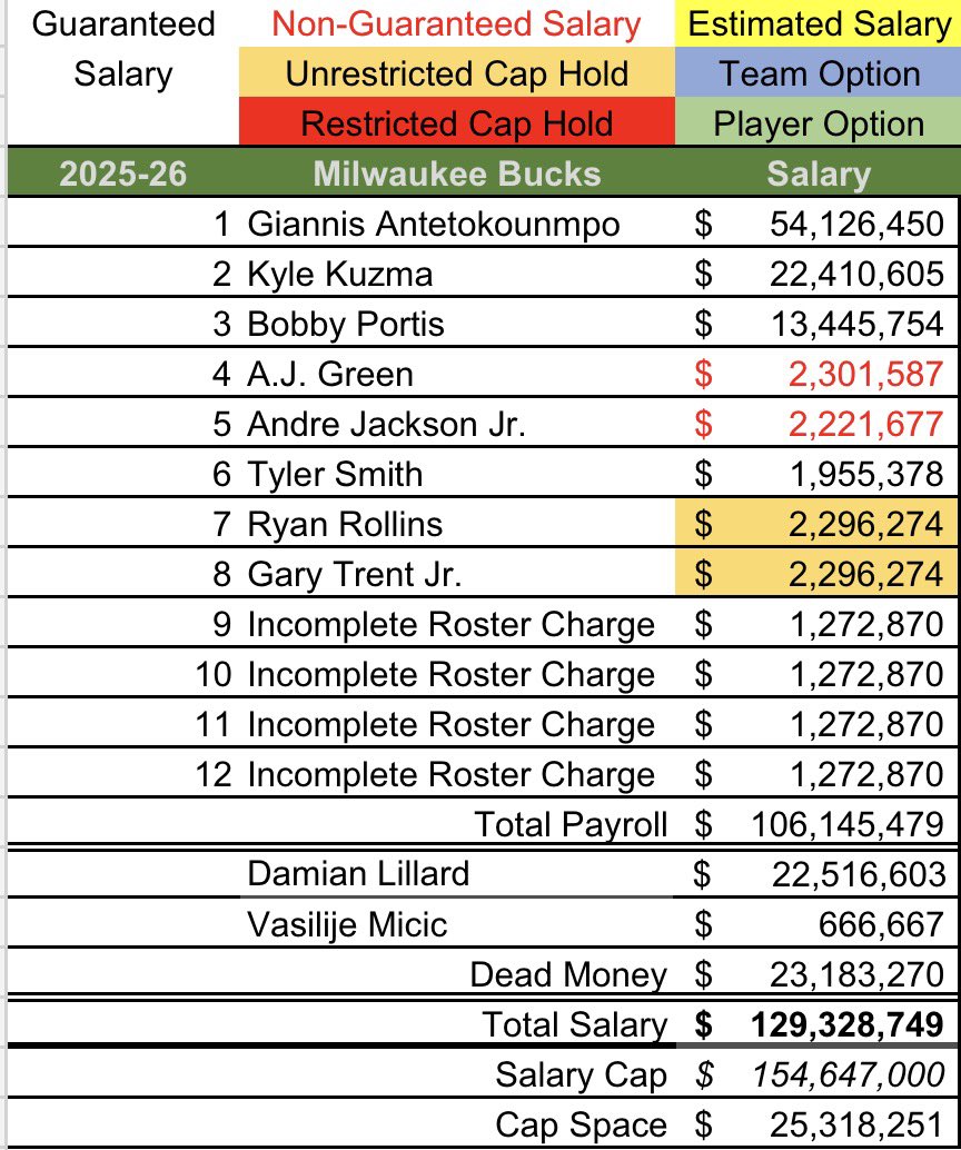 在續(xù)約波蒂斯、延伸條款裁利拉德和米西奇后,雄鹿剛好剩下2531.8萬美元的空間,全都給了特納。
