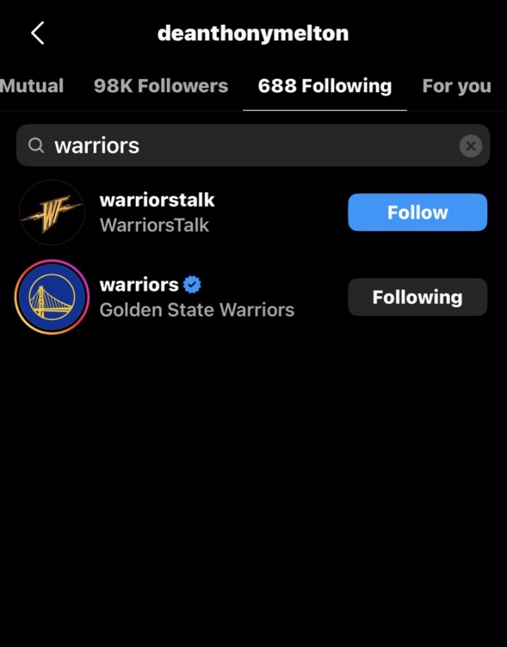 此前梅爾頓受傷之后曾經(jīng)修改頭像為全黑,并且取關了勇士
