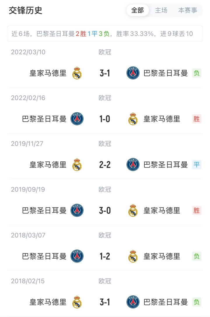 巴黎B組第一出線,先后淘汰邁阿密?chē)?guó)際和拜仁?;蜀R以H組頭名出線,先后淘汰尤文和多特。兩隊(duì)歷史上共交手12次,皇馬5勝3平4負(fù)。