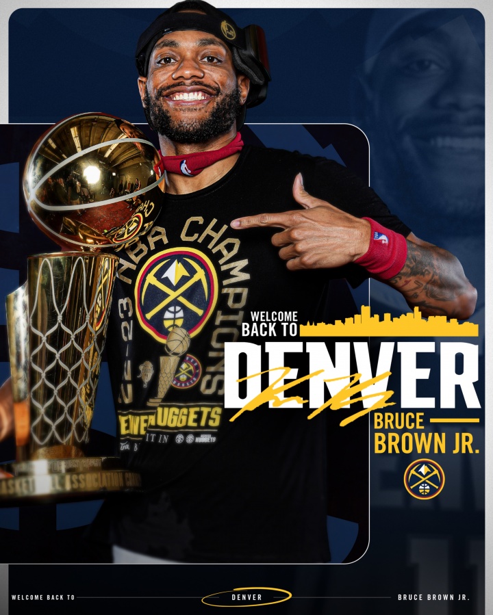 冠軍功臣回歸??掘金正式官宣歡迎布魯斯-布朗重返丹佛!