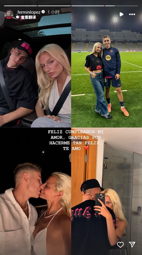 04月15日訊 今天巴薩中場(chǎng)費(fèi)爾明在社媒上祝女友生日快樂(lè),他寫道:親愛(ài)的,生日快樂(lè),感謝你讓我如此幸福,我愛(ài)你!