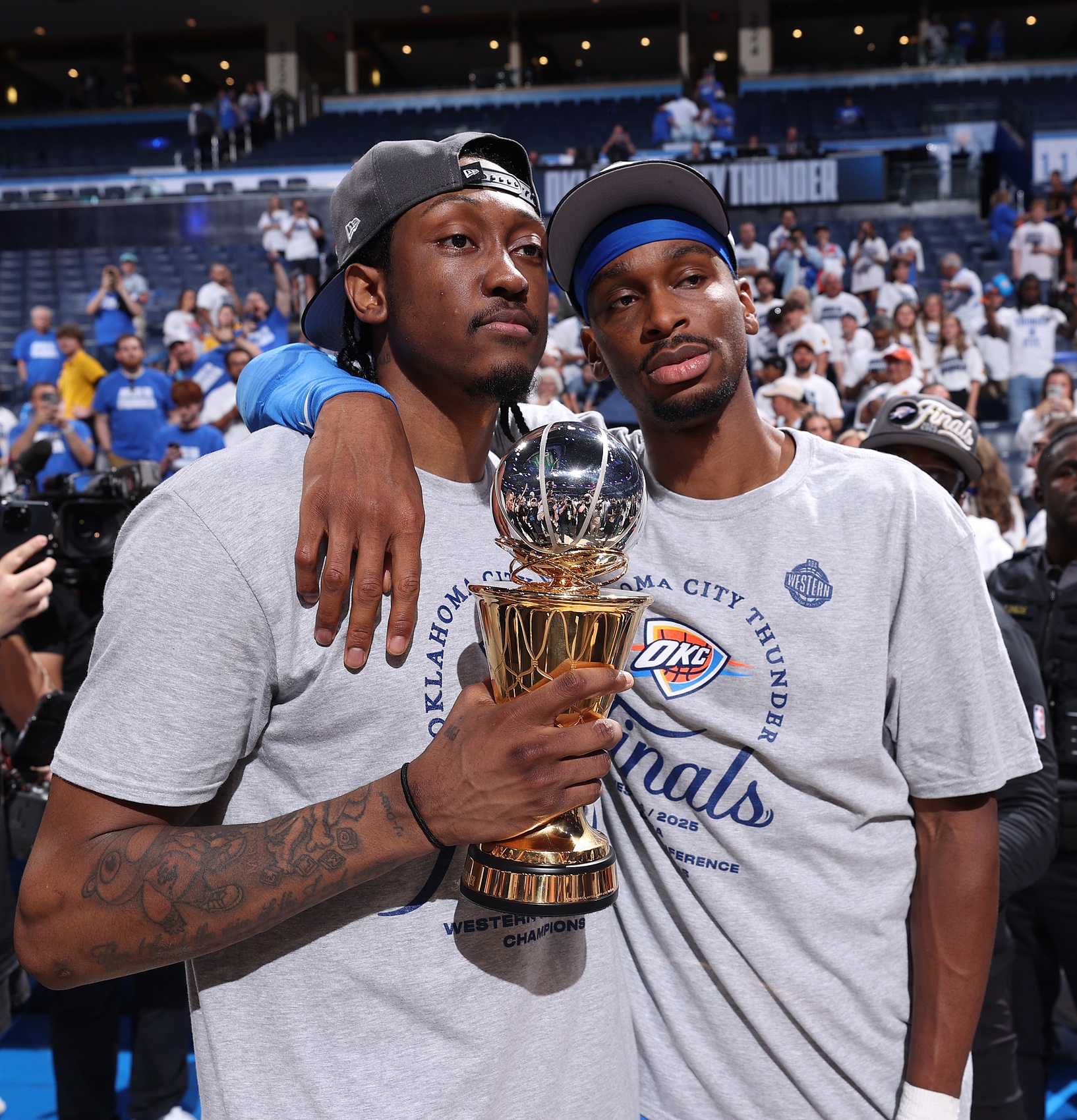 在西部決賽中4-1晉級的雷霆隊,正在重新定義老一輩人對總冠軍競爭者的所有認(rèn)知。如果雷霆隊本賽季能夠捧起拉里-奧布萊恩獎杯,他們將成為NBA歷史上第二年輕的總冠軍球隊,僅次于1977年由24歲的比爾-沃頓率領(lǐng)的波特蘭開拓者隊(24.2歲)。如果雷霆隊能夠奪冠,在現(xiàn)代籃球史上幾乎沒有與他們類似的先例。21世紀(jì)以來最年輕的總冠軍球隊是2015年的金州勇士隊,他們的平均年齡為26.3歲,比目前的雷霆隊整整大了將近兩歲。