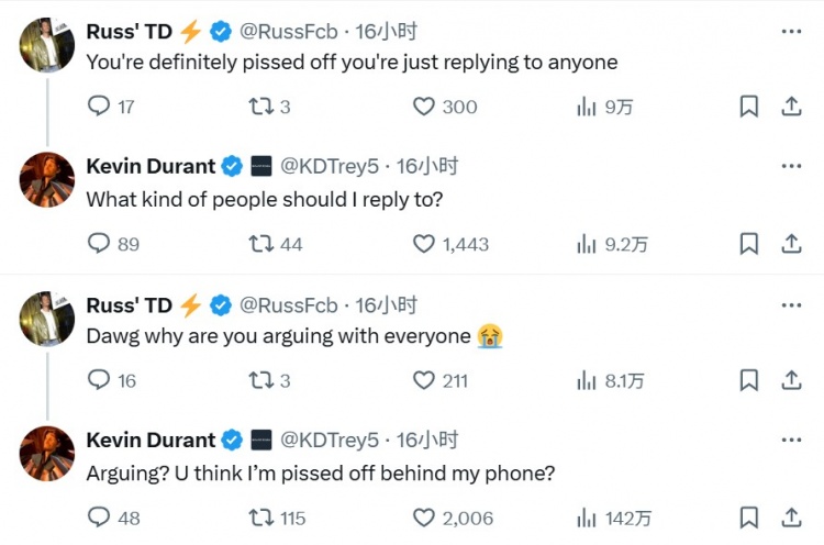 杜蘭特:“爭(zhēng)論?你覺(jué)得我會(huì)隔著屏幕生氣嗎?”