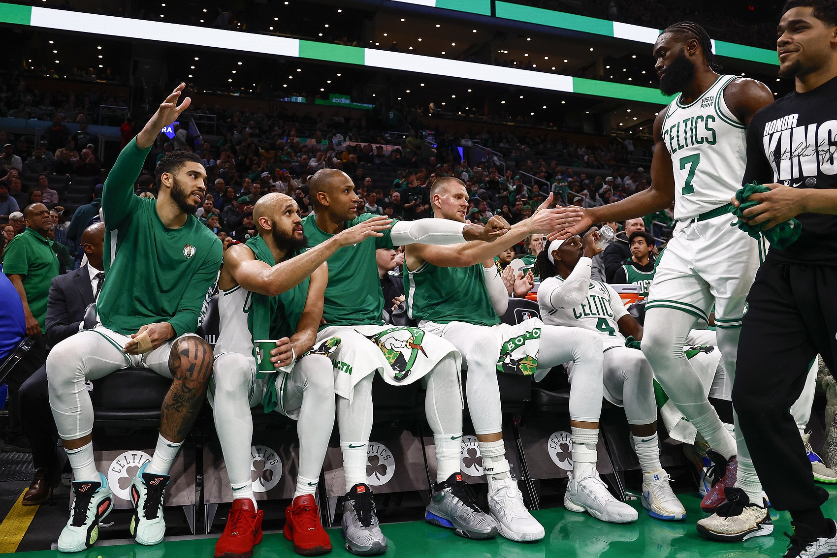 2021年的衛(wèi)冕冠軍是誰?是湖人隊。你可能還記得,他們在首輪對陣菲尼克斯太陽隊的系列賽中原本占據(jù)主動,直到安東尼-戴維斯腹股溝拉傷。一年后,衛(wèi)冕冠軍雄鹿隊在次輪系列賽全程缺少克里斯-米德爾頓的情況下,仍與凱爾特人隊?wèi)?zhàn)至搶七。今年的凱爾特人隊幾乎每位球員都在季后賽前或季后賽中受傷,包括杰森-塔圖姆跟腱撕裂。如果邁克爾-波特的雙臂健康,掘金隊或許能擊敗雷霆隊。?