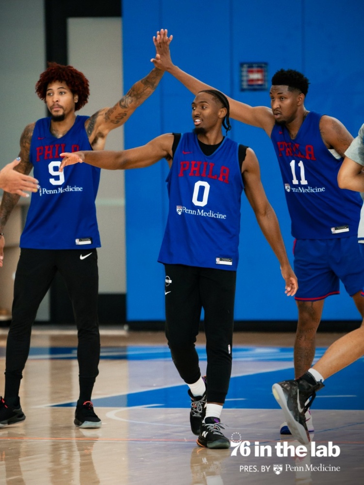 76人官方曬訓(xùn)練照:恩比德指導(dǎo)探花秀埃奇庫(kù)姆 馬克西&麥凱恩在列