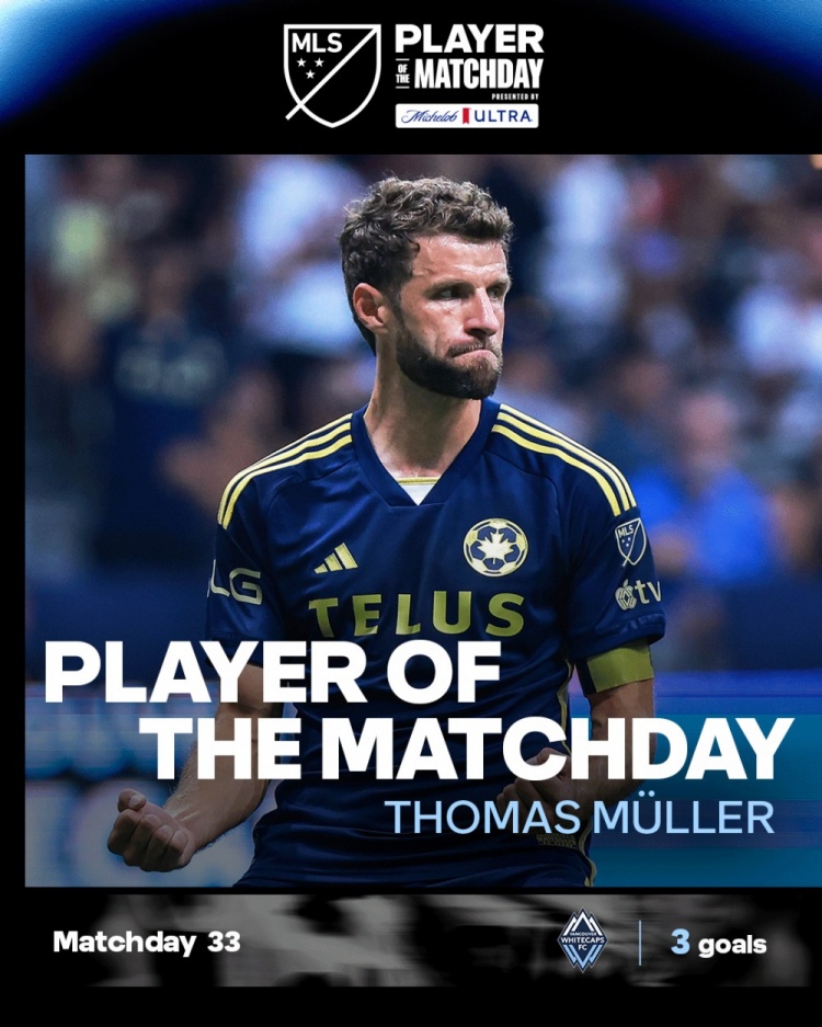 美職聯(lián)官方社媒曬出為穆勒制作的海報(bào),宣布他當(dāng)選本輪比賽最佳球員。