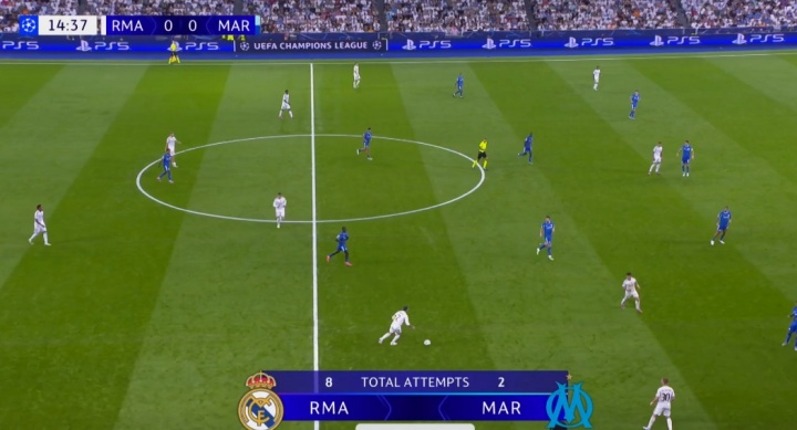 按著打!比賽皇馬vs馬賽僅過15分鐘,皇馬已射門8腳