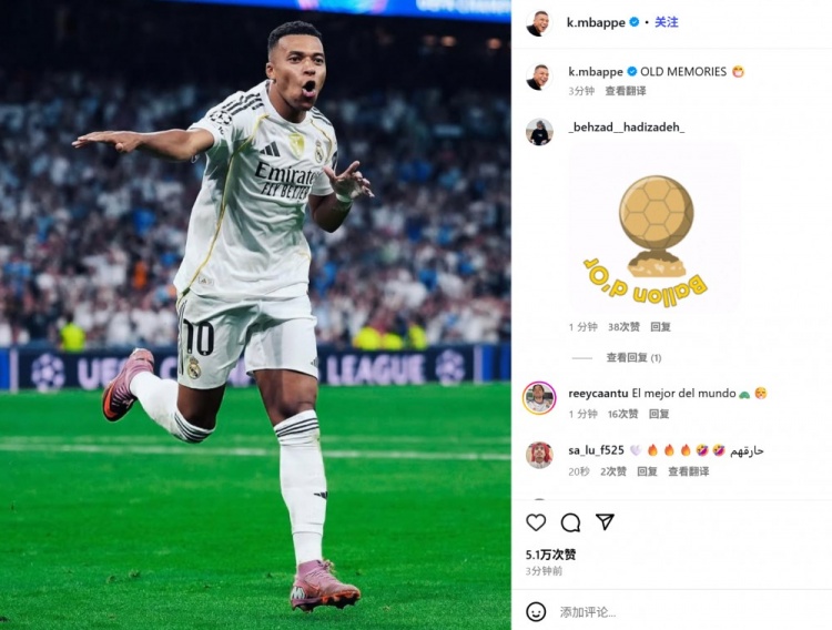 姆巴佩也在賽后曬出自己的慶祝照,并配文:“舊日的記憶?!?/p>