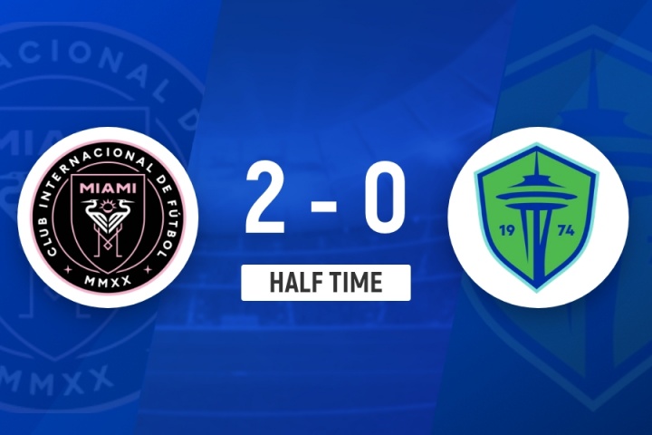 傷停補(bǔ)時(shí)2分鐘。上半場比賽結(jié)束,邁阿密國際2-0西雅圖海灣人。