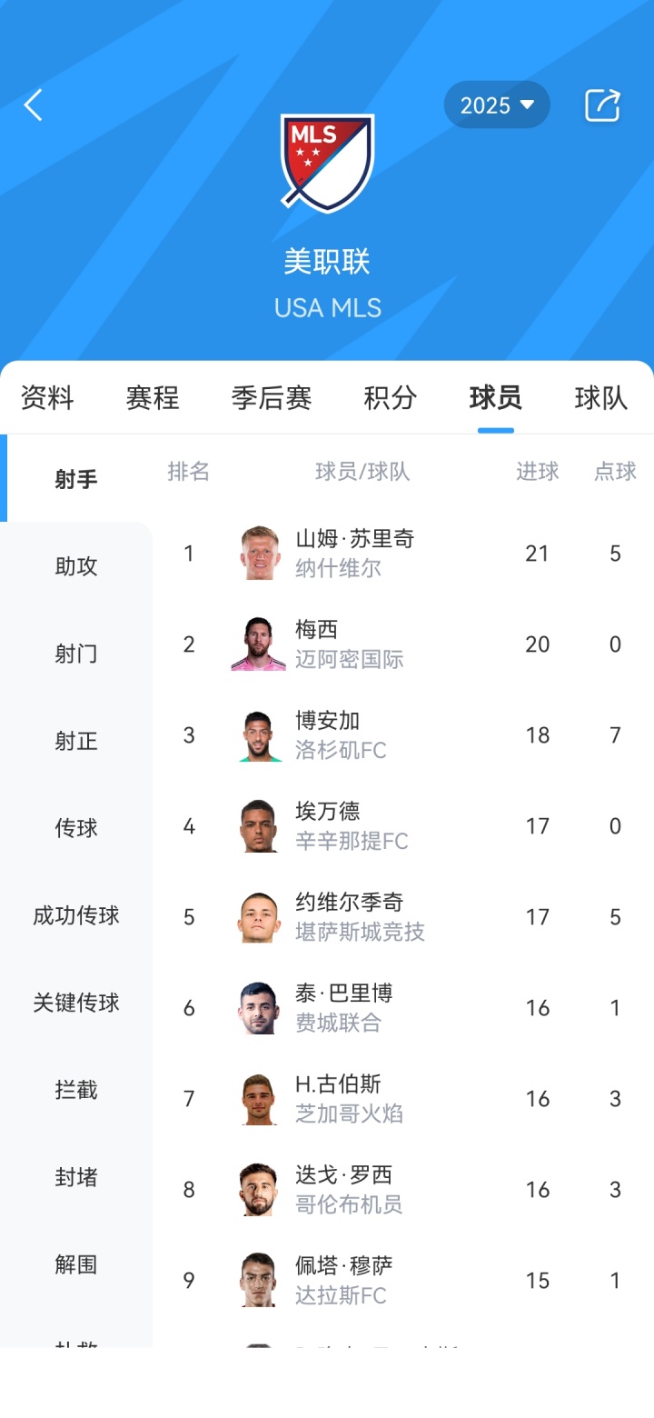 本賽季梅西在美職聯(lián)出戰(zhàn)21場(chǎng)打入20球(0點(diǎn)球),目前暫居射手榜第二位,在射手榜上排名第一的是納什維爾前鋒蘇里奇,他出戰(zhàn)30場(chǎng)打入21球。