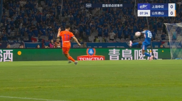 中超第24輪,上海申花主場(chǎng)對(duì)陣山東泰山。比賽第6分鐘,泰山球員投訴馬納法防守時(shí)手球,VAR檢查后確認(rèn)沒(méi)有犯規(guī),裁判示意比賽繼續(xù)。記者牛志明賽后發(fā)文,表示針對(duì)泰山隊(duì)和申花比賽的爭(zhēng)議判罰,泰山隊(duì)會(huì)申訴。