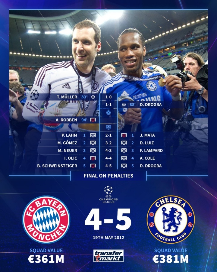 09月17日訊 北京時(shí)間明晨3:00,拜仁坐鎮(zhèn)安聯(lián)主場迎戰(zhàn)切爾西。賽前,德轉(zhuǎn)官方回顧了2012年切爾西在安聯(lián)球場力克拜仁奪冠的歷史性一役時(shí)雙方的陣容。
