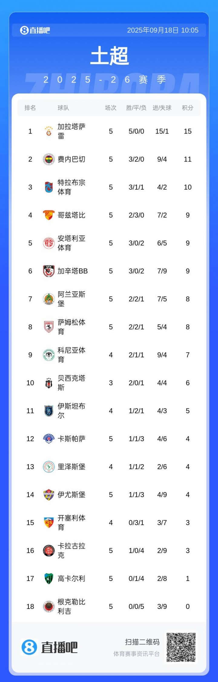 這賽季費(fèi)內(nèi)巴切因?yàn)闊o緣歐冠正賽,解雇了主帥穆里尼奧,然后進(jìn)行了一大波引援。然而本輪補(bǔ)賽球隊(duì)遭遇絕平,土超的榜首加拉塔薩雷繼續(xù)穩(wěn)居榜一。