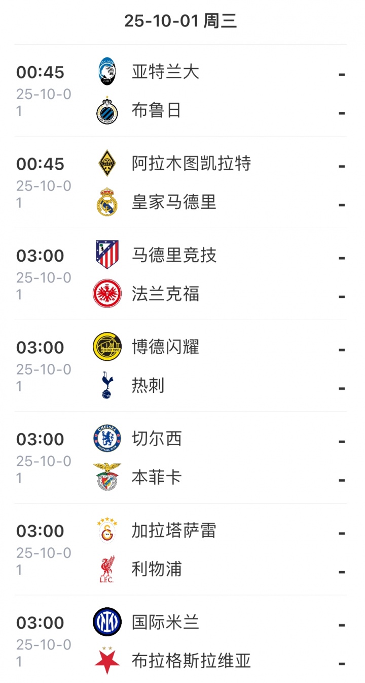 歐冠聯(lián)賽階段第二輪預告↓