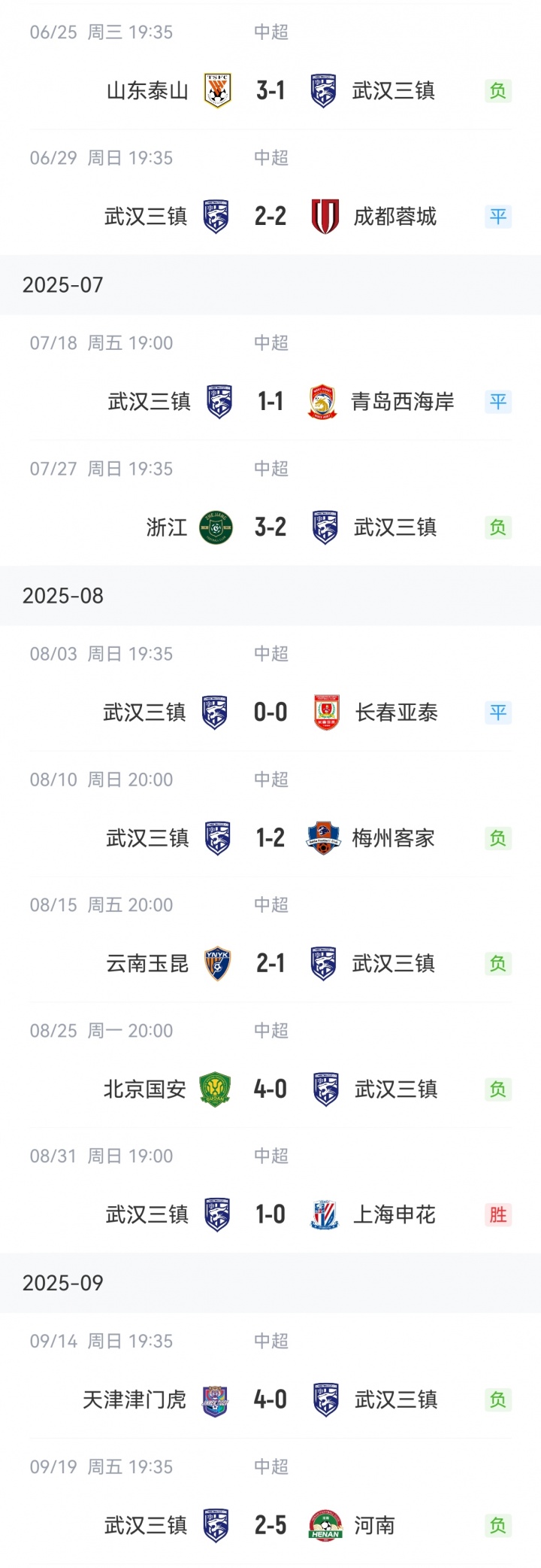 09月19日訊 武漢三鎮(zhèn)2-5不敵河南,遭遇連場大敗,近2場比賽狂丟9球。