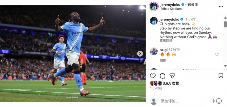 本場比賽多庫打進精彩進球,他也在個人社媒曬出慶祝進球照片,配文寫道:“歐冠之夜回歸!我們一步一步找回節(jié)奏,現(xiàn)在專注于周日的比賽,一切都來自上帝的恩賜。”