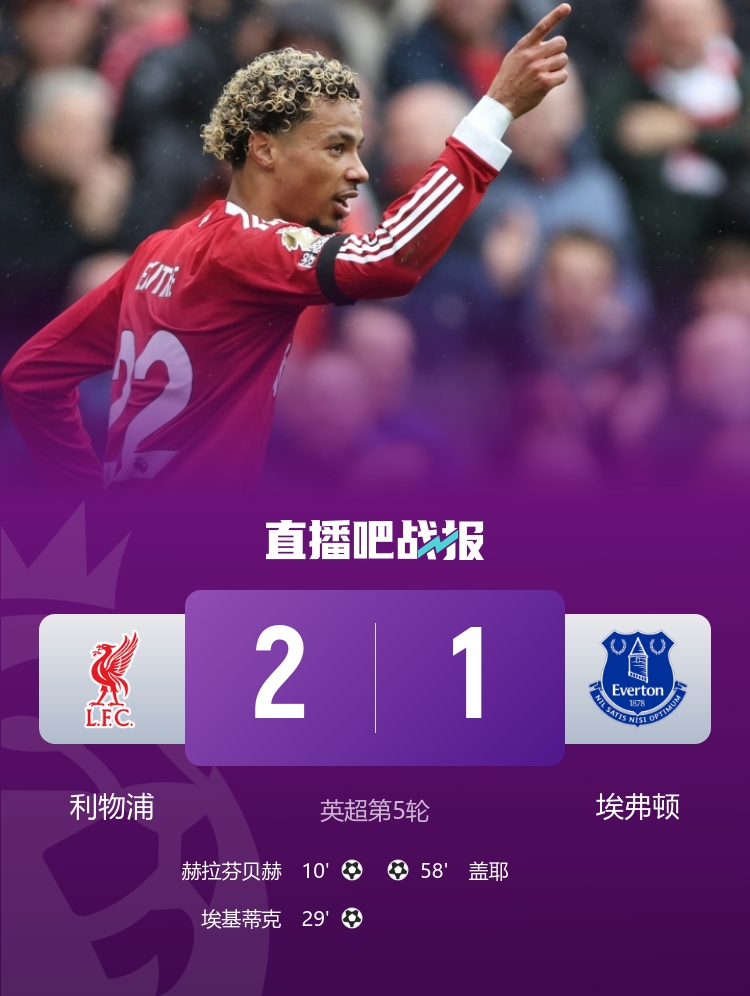 9月20日訊 北京時間9月20日19:30,2025-26賽季英超聯(lián)賽第5輪迎來默西塞德德比,利物浦坐鎮(zhèn)安菲爾德球場迎戰(zhàn)埃弗頓。上半場薩拉赫助攻赫拉芬貝赫破門,?;倏私拥胶绽邑惡罩比傧乱怀牵锲謺?-0埃弗頓;下半場蓋耶扳回一球,最終利物浦2-1埃弗頓,開賽5連勝積15分,先賽一場6分優(yōu)勢領跑積分榜。