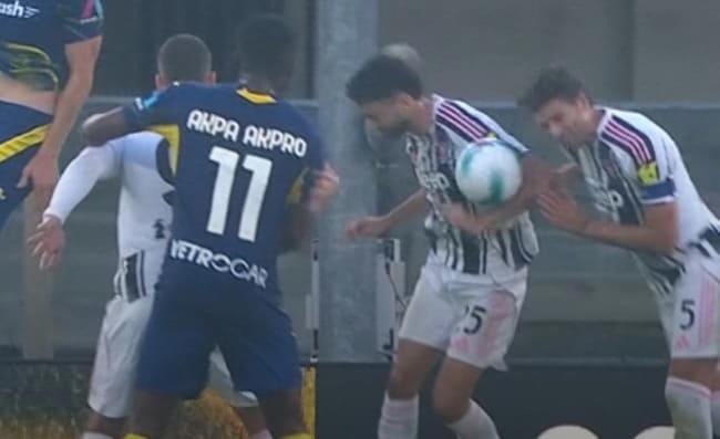 “馬里奧根本無法預(yù)判球的落點。從他的身體姿勢來看,他閉上了眼睛,而且手臂有向內(nèi)收縮的趨勢,這和我們在博洛尼亞比賽中看到的手球完全不同?!?/p>