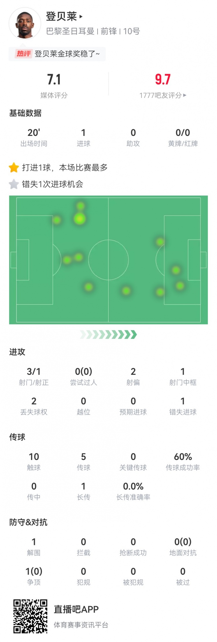 7月6日訊 巴黎在世俱杯八強(qiáng)戰(zhàn)2-0淘汰拜仁,登貝萊本場數(shù)據(jù)如下: