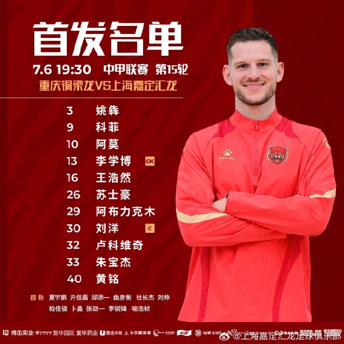 上海嘉定匯龍VS重慶銅梁龍首發(fā)陣容已出!
