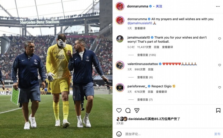 穆西亞拉今日在多納魯馬社交媒體評(píng)論區(qū)回復(fù):謝謝你的祝福,不必?fù)?dān)心,這些都是足球的一部分。
