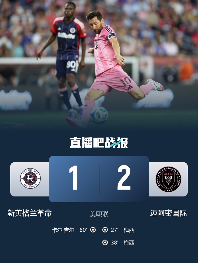 7月10日訊 北京時(shí)間7:30,美職聯(lián)邁阿密國(guó)際vs新英格蘭革命,比賽在吉列體育場(chǎng)打響!上半場(chǎng), 梅西梅開(kāi)二度!近5輪9球4助!下半場(chǎng),阿連德后場(chǎng)被斷,卡爾-吉爾遠(yuǎn)射破門(mén)。最終,漫國(guó)際2-1戰(zhàn)勝新英格蘭革命,美職聯(lián)4連勝!