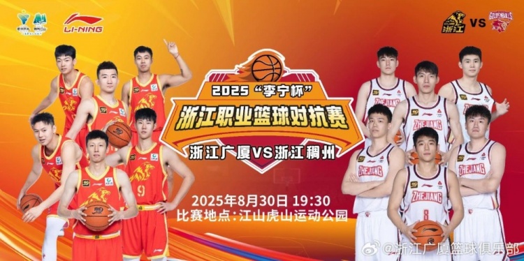 8月21日訊 浙江廣廈男籃官方消息,球隊(duì)將在2025“李寧杯”浙江職業(yè)籃球?qū)官愔袑?duì)陣浙江隊(duì)。