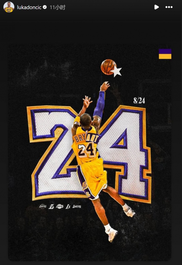 湖人球星盧卡-東契奇轉(zhuǎn)發(fā)了自己和科比生涯最后的合照致敬。