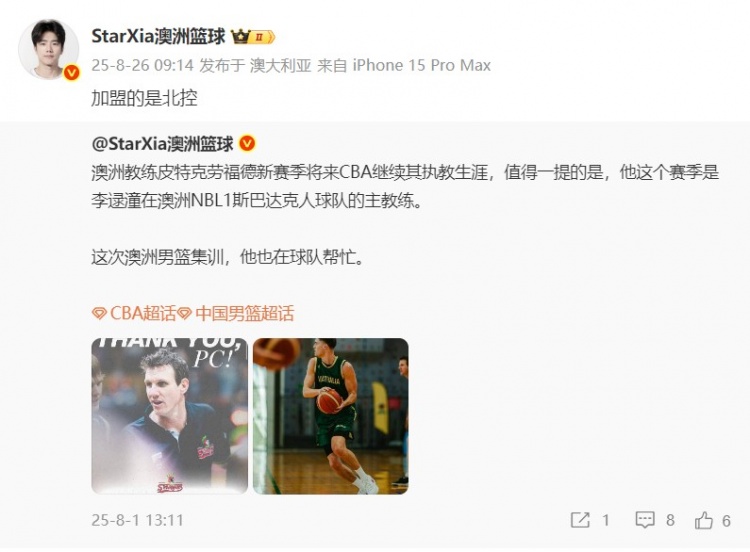 8月26日訊 據(jù)媒體人@StarXia澳洲籃球 報道,澳洲教練皮特-克勞福德加盟北控教練組。