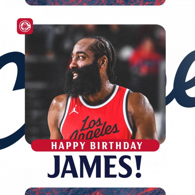 快船官推發(fā)文:祝詹姆斯-哈登36歲生日快樂??
