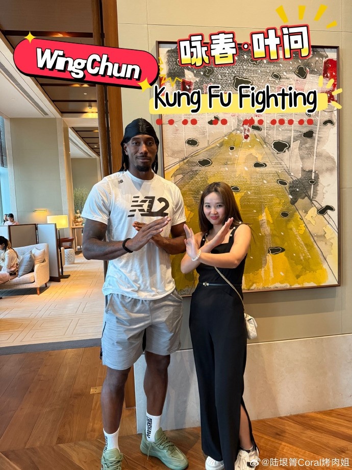 前記者、萊昂納德中方經(jīng)紀(jì)人“烤肉姐”陸垠箐曬出與小卡的合照,并寫道:“中國(guó)功夫卡 ??”
