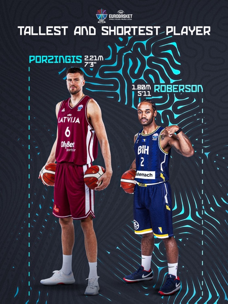 其中最高的是拉脫維亞球員波爾津吉斯,他的身高為2米21;而最矮的球員為波黑球員約翰-羅伯森,他的身高為1米8。