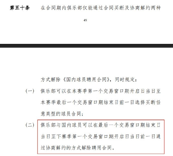 但這個協(xié)商解約就真的是商量著來了(圖4),比如規(guī)定一上來就寫了,“俱樂部與國內(nèi)球員可自行約定剩余工資、培養(yǎng)費(最多收取 50%)及 CBA 聯(lián)賽相關(guān)注冊權(quán)利等”。