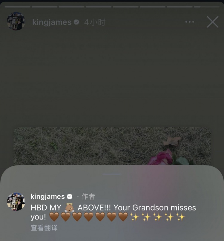 詹姆斯的母親曬出自己母親(即詹姆斯外婆)的墓碑照,紀念母親誕辰日。詹姆斯轉(zhuǎn)發(fā)母親的帖子寫道:“生日快樂,我天堂上的?????。。∧耐鈱O想念您!?????????????????????”