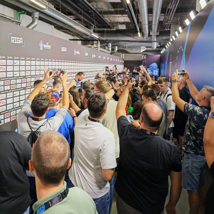 9月8日訊 男籃歐錦賽1/8決賽,斯洛文尼亞84-77擊敗意大利,晉級八強。賽后東契奇出現(xiàn)在混合采訪區(qū)接受采訪時,被記者圍得水泄不通。歐媒Eurohoops評論到:“東契奇的出現(xiàn)讓混合采訪區(qū)陷入了混亂?!?/p>